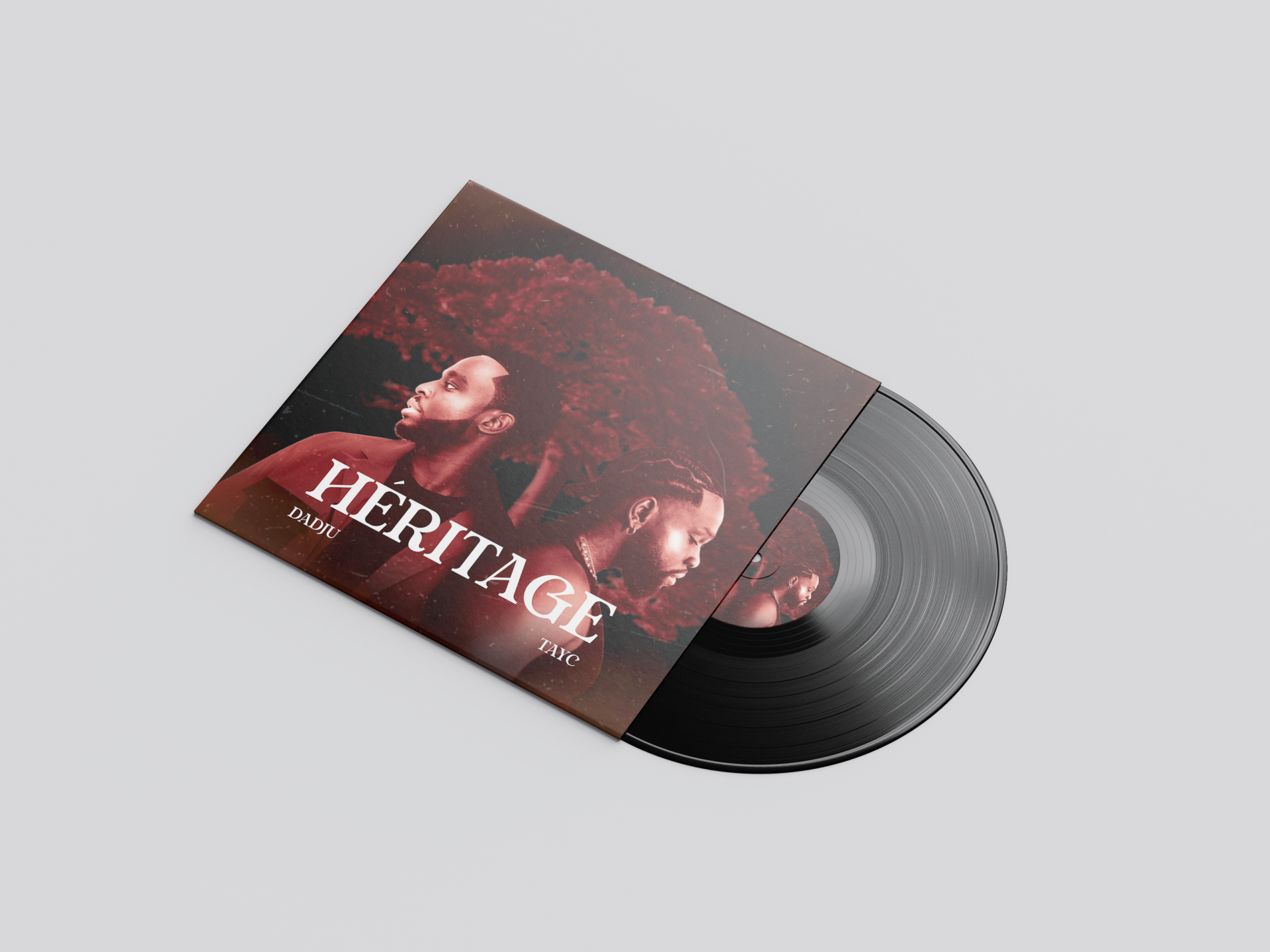 Description : J’ai imaginé une pochette de vinyle pour l’album « Héritage » des artistes Dadju et Tayc. La conception de la pochette s’inspire du storytelling de l’album.
